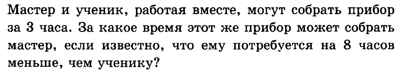 ученик сделает за х+8 часов, его производительность 1/х+8