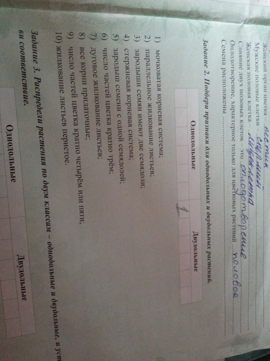 однодольные- 1,2,5,6,7,8