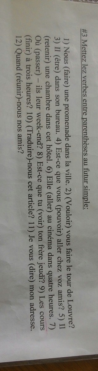 ferons, Voudrez-vous, sera, pourrez, retiendra, ira, passeront-ils, verras, finirons, traduirons, dirai, réunirons