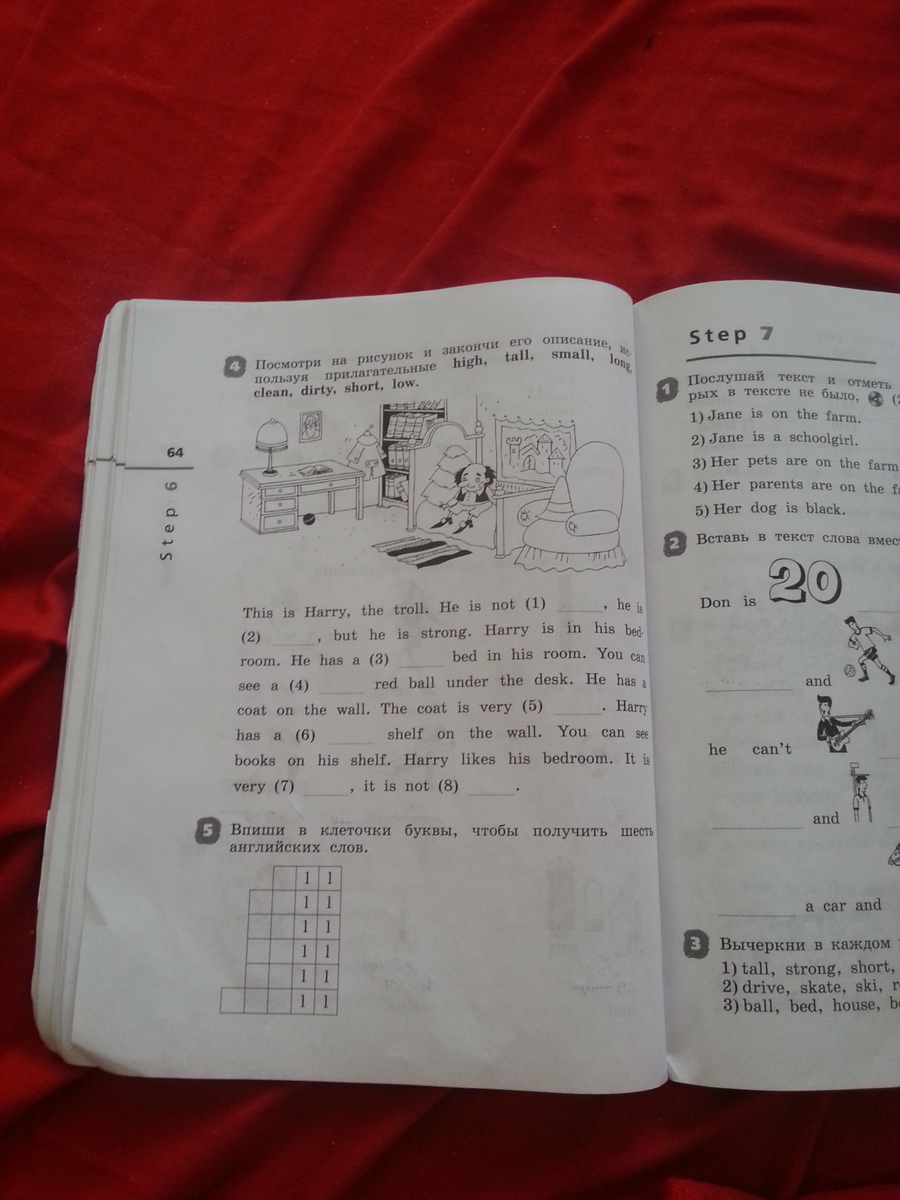 посмотри на рисунок и закончи его описание, используя прилагательные high, tall, small, long, clean, dirty, short, low.
