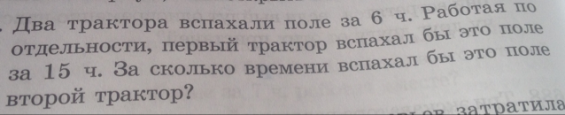 1)1:6=1/6(поля)- в час вспахивали два тракториста