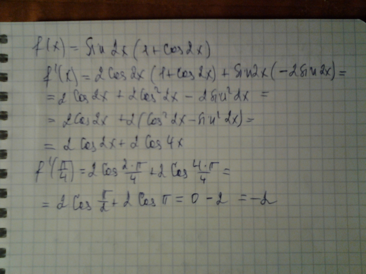 Применены формулы дифференцирования, формула двойного угла косинуса