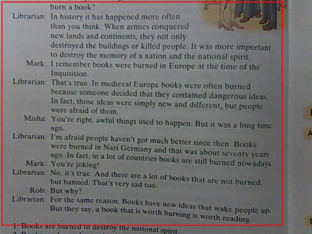 - Это правда. В средневековой европе книги очень часто сжигались, потому что кто-то решил, что лни содержат опасные идеи. Фактически, те идеи были просто новыми и разными, но люди были напуганны ими.