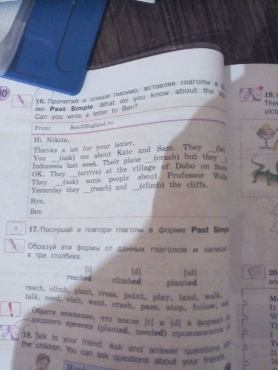1) ask-asked 2) be-been 3) crash-crashed 4) не видно 5) arrive -arrived 6) ask-asked 7) reach - reached () climb - climbed
