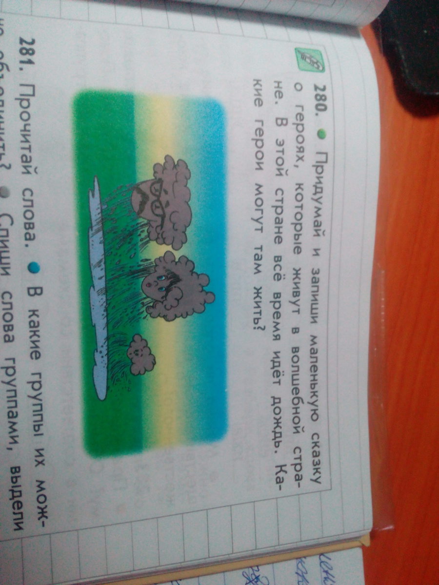 Давным-давно существовала страна под названием Дождиландия. Все время в ней шел дождь. Жители этой страны очень любили и радовались ему. А сами жители были похожи на тучки. Из них тоже все время шел дождь. Из взрослых тучек шел большой дождь а из маленьких тучек- деток шел грибной дождь. Это пока все что я придумала.