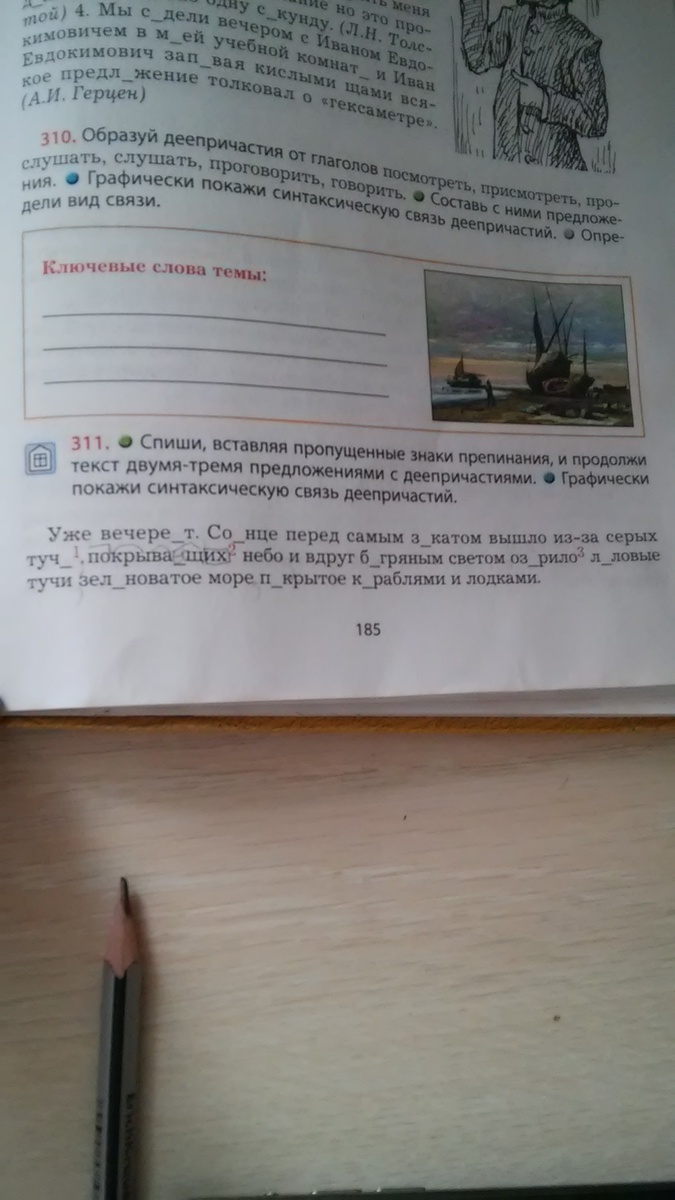 Уже вечереет. Солнце перед самым закатом вышло из-за серых туч, покрывающих небо и вдруг багряным светом озарило лиловые тучи, зеленоватое море, покрытое кораблями и лодками.