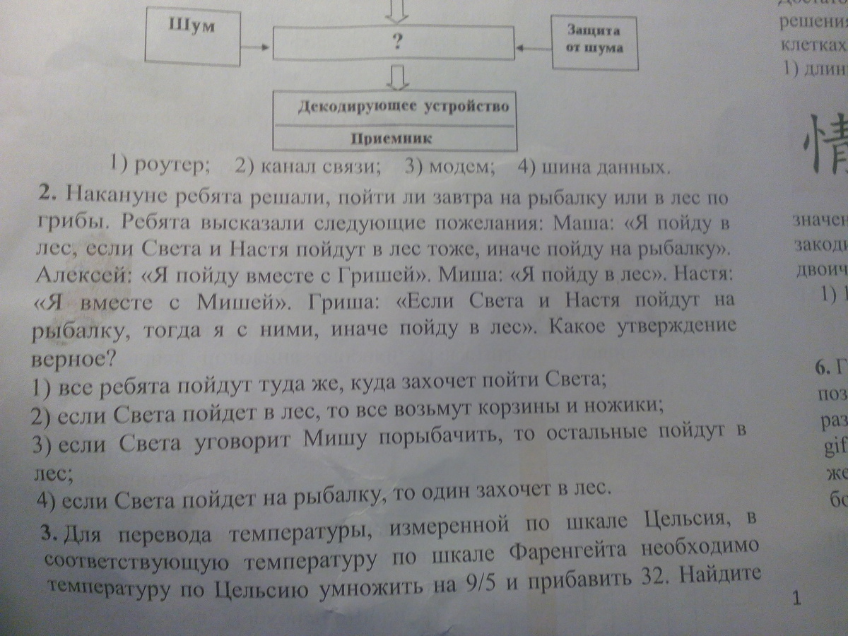 Потому что Миша идет в лес, Настя в лес с ним, Света идет в лес по второму условия, тогда и Маша идет в лес со Светой и Настей. Так как Света и Настя не идут на рыбалку, то Гриша идет в лес. А вместе с Гришей Алексей. Значит, если Света идет в лес, то все возьмут корзины с ножами и пойдут туда же.
