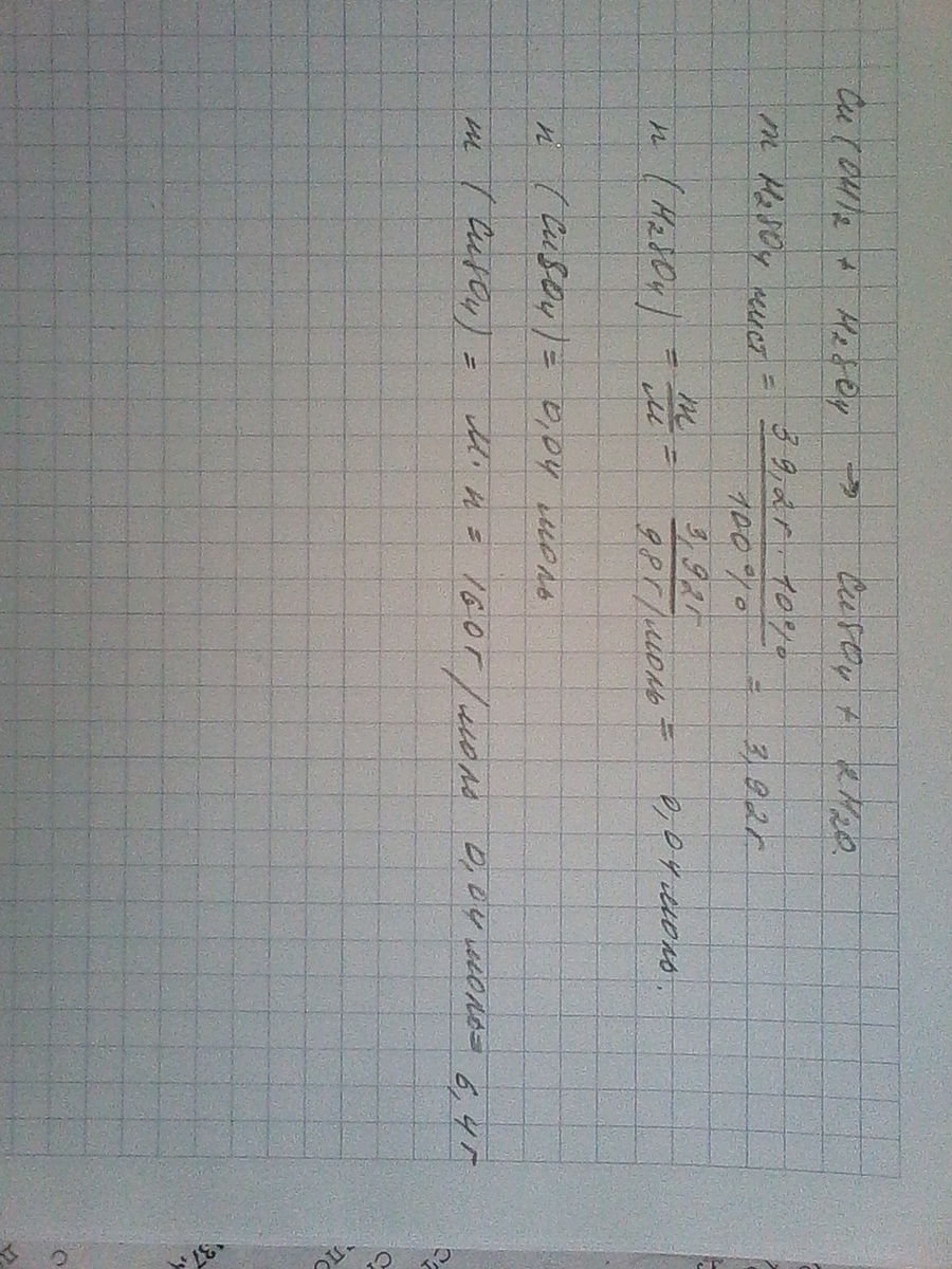 Вычислить массу сульфата меди(II), полученного при участии 39,2г 10 % раствора серной кислоты и гидроксида меди(II)