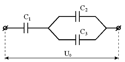 С1=9 мкФ, С2=3 мкФ, С3=6 мкФ, U0=10 кВ.