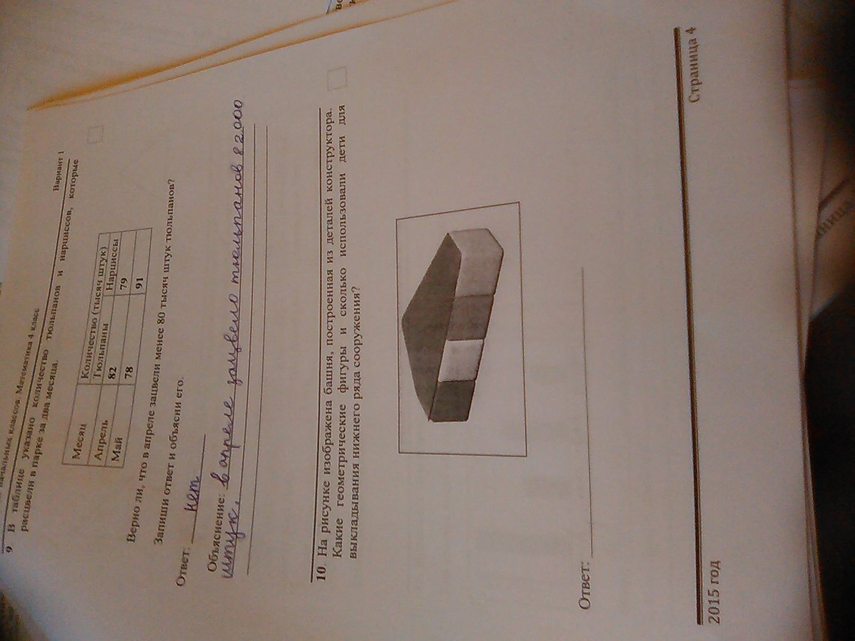 какие геометрические фигуры и сколько использовали дети для выкладывания нижнего ряда сооружения?