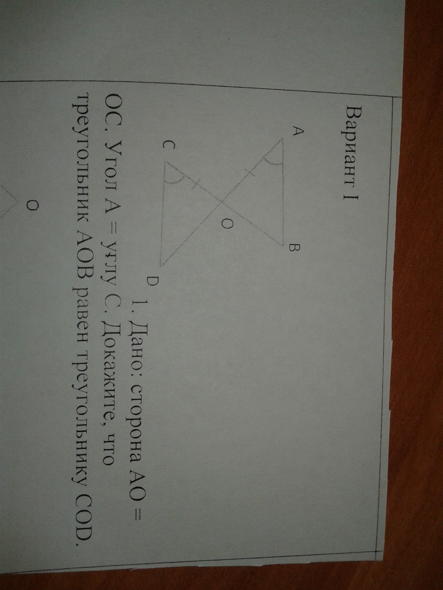 т.к угол С равен углу А, СО равно АО, углы COD и AOD равны, то треугольники равны по стороне и двум прилежащим углам.