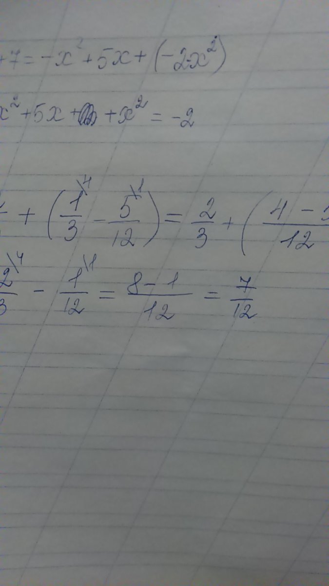 попробуй такой его решить с дробью две третьих плюс скобка одна третья минус пять двеннадцатых и скобка