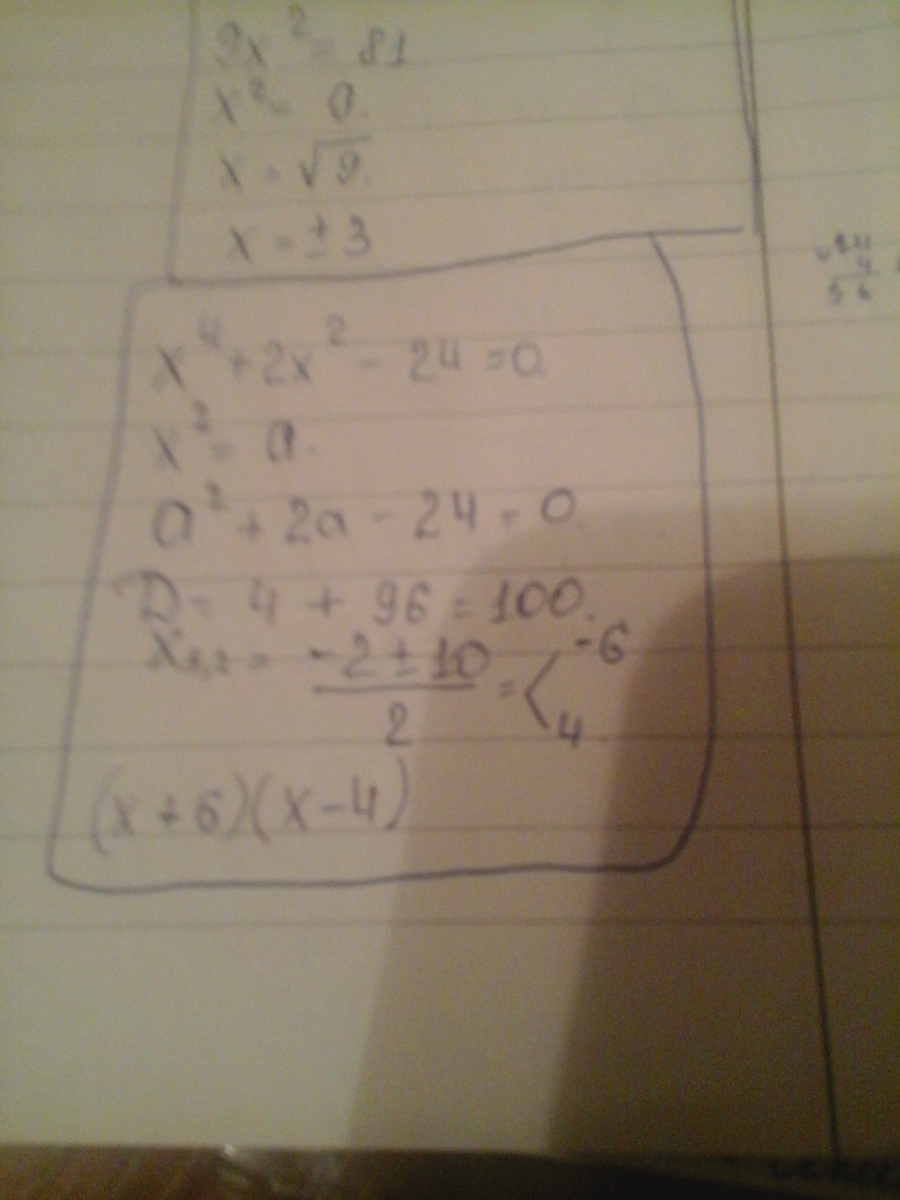 Спасибо большое конечно, а как х^4+2х^2-24 разложить на множители?