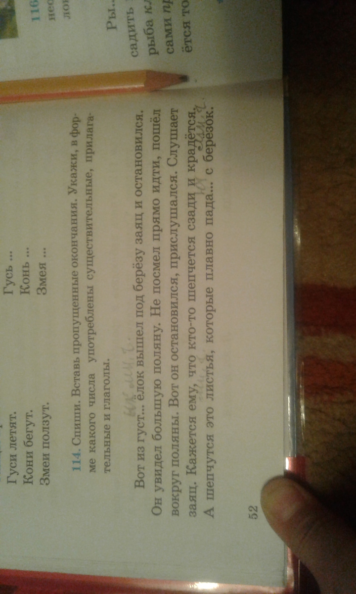 Вот из густых(каких?мн.ч) елок(мн.ч) вышел(ед.ч) под березу(ед.ч) заяц(ед.ч) и остановился(ед.ч). Он увидел(ед.ч) большую(ед.ч) поляну(ед.ч). Не посмел(ед.ч) прямо идти(ед.ч), пошел(ед.ч) вокруг поляны(ед.ч). Вот он остановился(ед.ч), прислушался(ед.ч). Слушает(ед.ч) заяц(ед.ч). Кажется ему, что кто-то шепчется(ед.ч) сзади и крадется(ед.ч). А шепчутся(мн.ч) это листья(мн.ч), которые плавно падают(что делают?мн.ч) с березок(мн.ч).