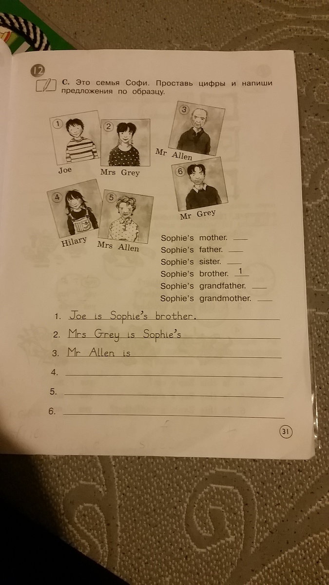 ОТ МОДЕРАТОРА. цифры: mother -2, father -6, sister -4, grandfather- 3, grandmather -5
