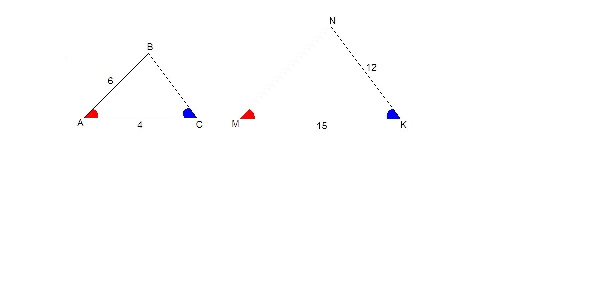 Дано: Треугольник ABC и MNK:AB=6 ,AC=4, BC=X ,MN=X, NK=12 ,MK=15.