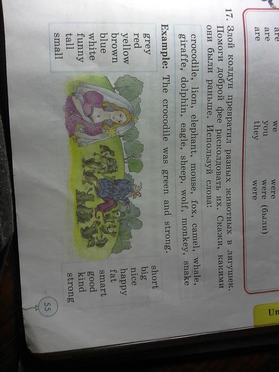 The lion was yellow and strong. The elephant was grey and big. The mouse was grey and small. The fox was red and fat. The camel was yellow and smart. The whale was blue and strong. The sheep was happy and white. The wolf was fat and grey. The monkey was nice and funny