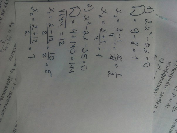 Д=2в квадрате+4*35=144(12)