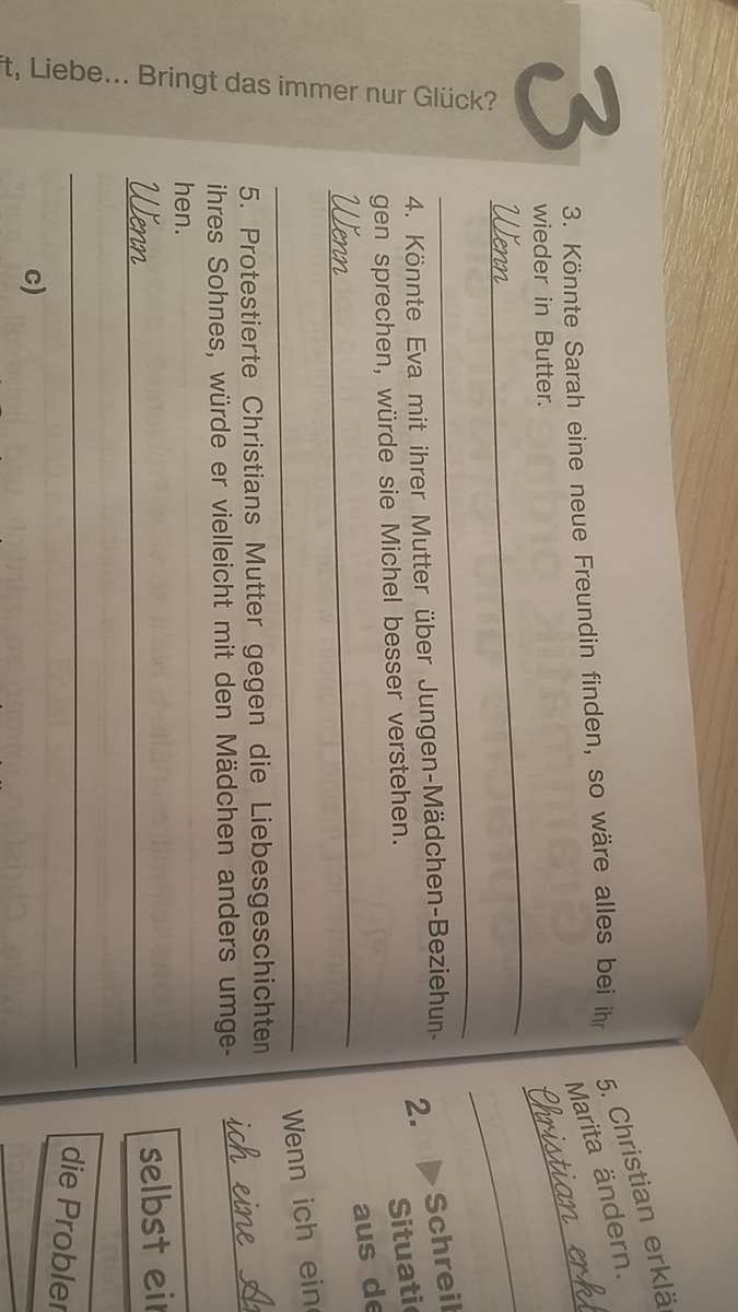 5. Wenn Christians Mutter gegen die Liebesgeschichten ihres Sohnes protestiert hätte, so würde er viellecht mit den Mädchen anders umgehen.