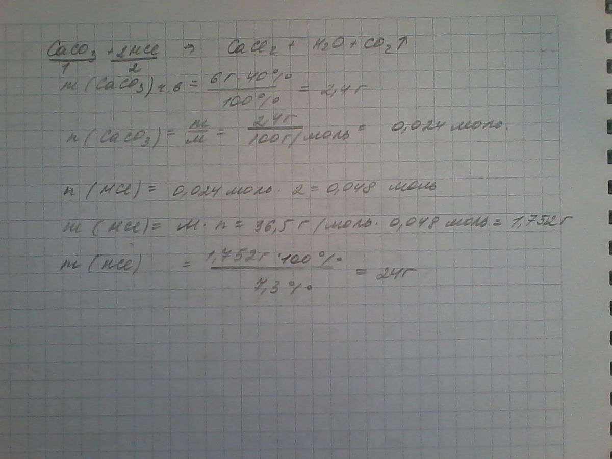 масса яичной скорлупы примерно равна 6 г а содержание в ней карбоната кальция 40% для растворения одного яйца необходим 7,3% ный раствор саляной кислоты массой