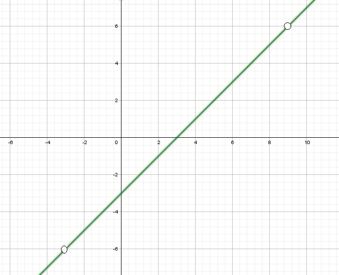 Получили линейную функцию; графиком линейной функции является прямая, проходящая через точки (0;-3), (3;0).