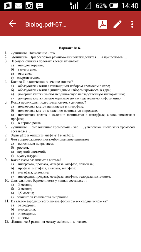 12 митоз- одно деление, нет конъюгации, образуются две диплоилные клетки