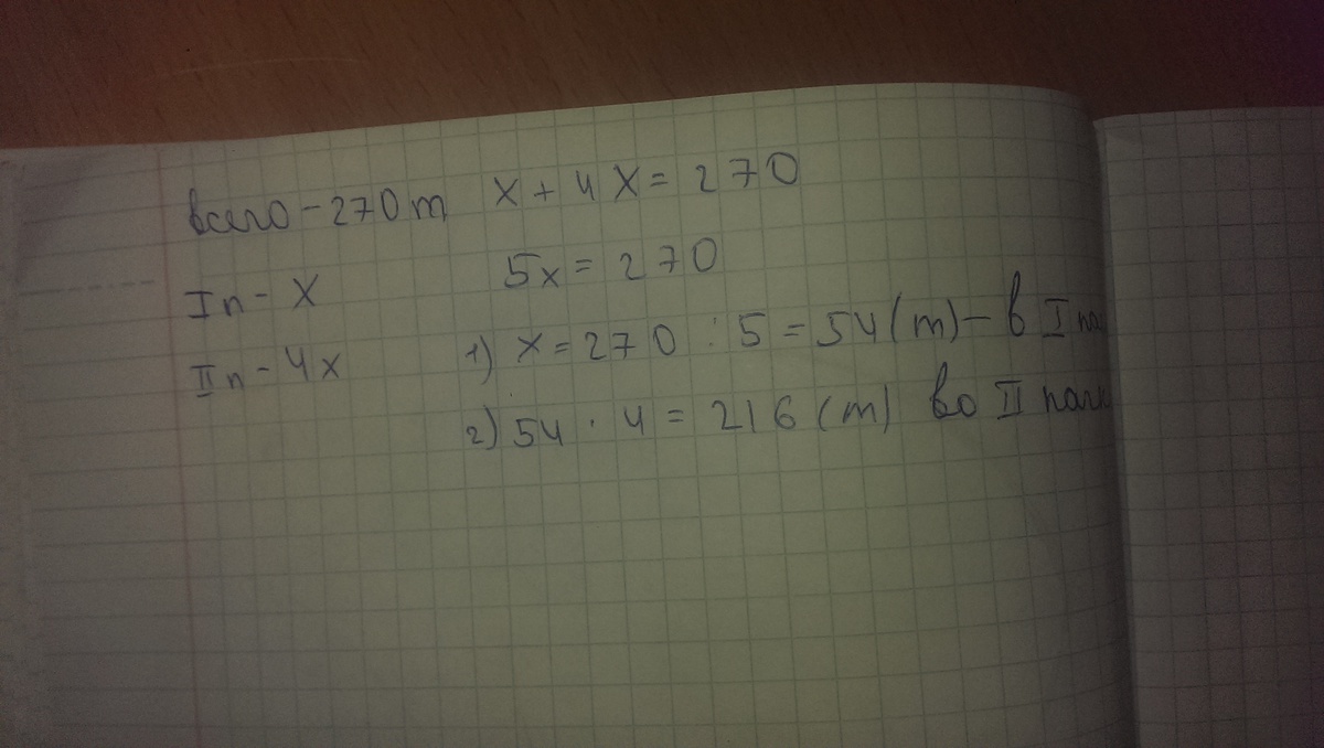 В двух пачках 270 тетрадей.Сколько тетрадей в каждой пачке, если в одной из них тетрадей в 4 раза меньше, чем в другой