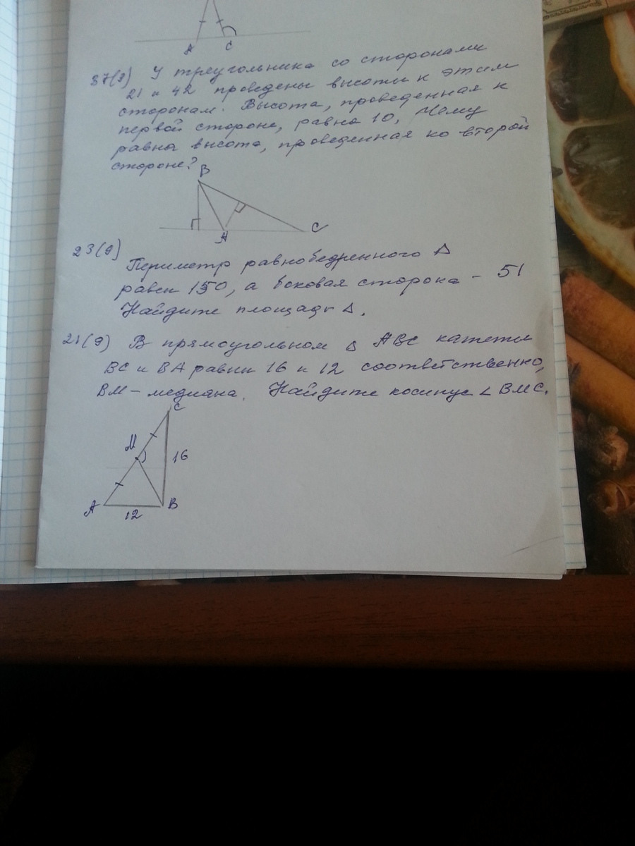 2) найдем основание 150-51·2=150-102=48см опустим высоту ВД на основаниеАС, он делит его на две равные части, найдем по т пифагора высоту. ВД=51^2-24^2= 45м тогда площадь =1/2·48·45=1080см^2 3)