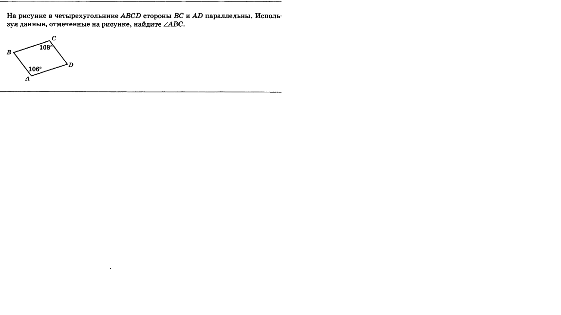 146:2=73гр-угол АВС, т.к ВС и АД параллельны