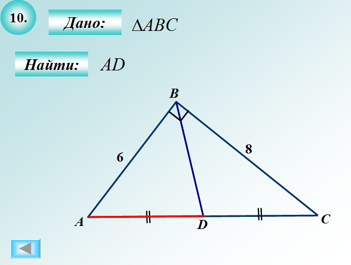 1. AD=AC:2 так как BD Является медианой а там дальше числа свои подставишь и решишь