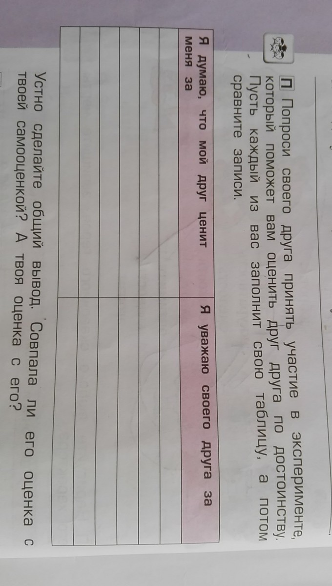 Попроси своего друга принять участие в эксперименте, который поможет вам оценить друг друга по достоинству. Пусть каждый из вас заполнить свою таблицу, а потом Сравните записи.