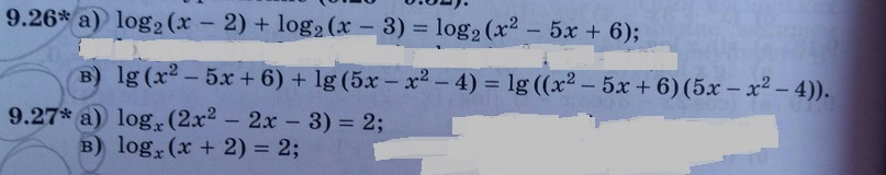 в) Lg(x² -5x+6) +Lg(5x -x² -4) =Lg ( (x² -5x+6) (5x -x² -4) );