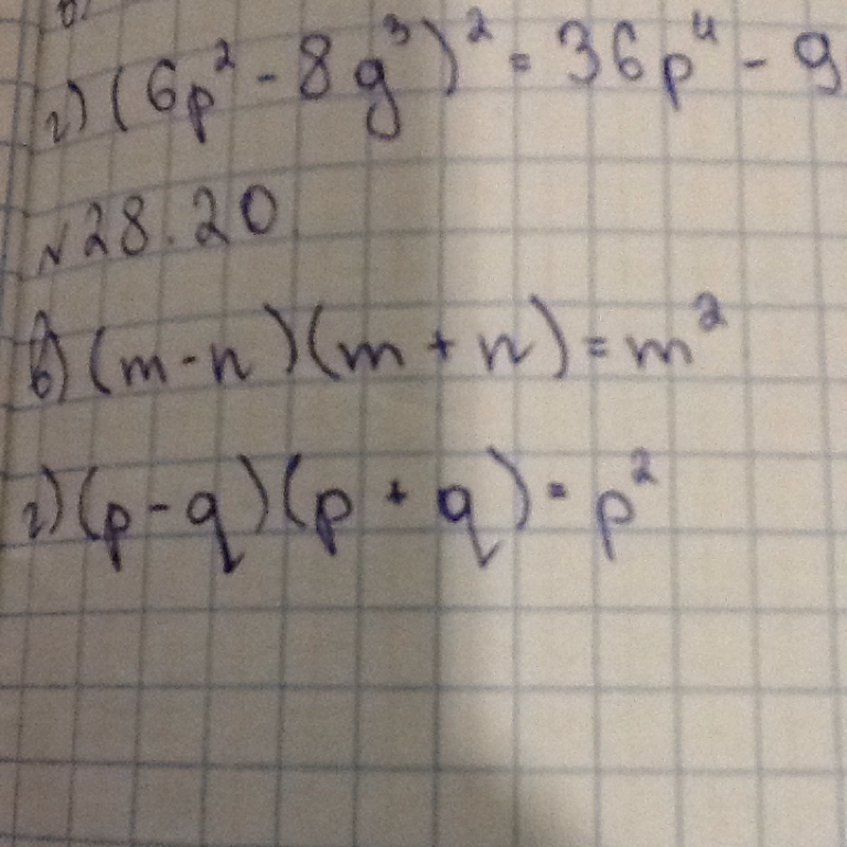 г)(p-q)(p+q)=p(в квадрате)-q(в квадрате)