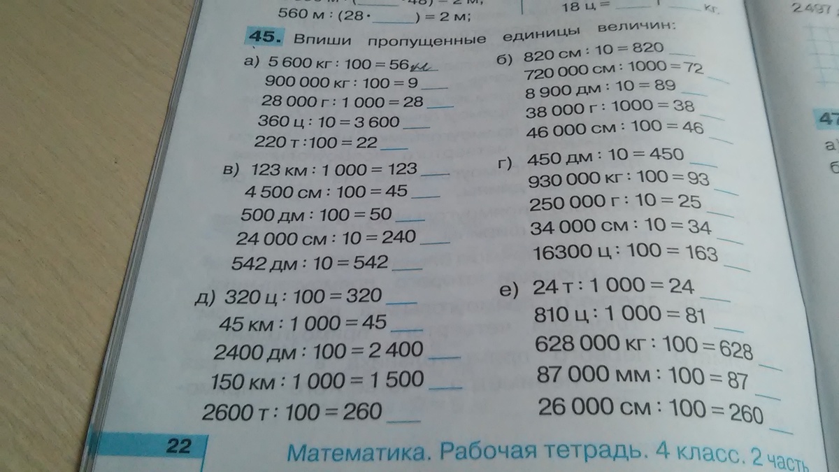 Помогите пожалуйста! номер 45. Напишите пожалуйста величины кг, т, центнеры...