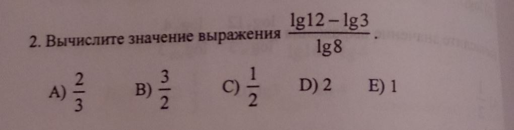 (lg 12 - lg 3)/lg 8 = (lg12/3)/lg8 = lg 4/lg 8=lg 2² / lg 2³ =2lg 2 /3lg 2=2/3