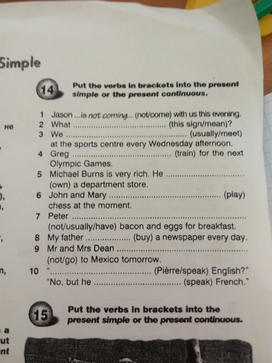 7. Peter doesn't usually have bacon and eggs for breakfest.