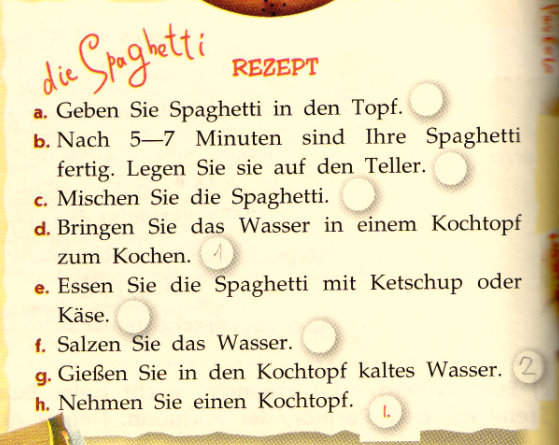 b. Через 5-7 минут спагетти готово. Переложите на тарелку.