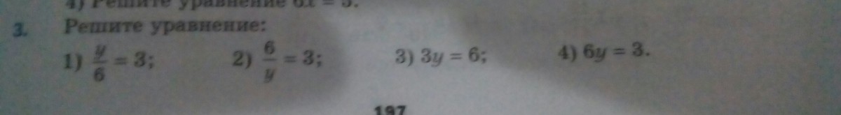 1)y=6*3 2) y=6:3=2 3)y=2 4) y=2