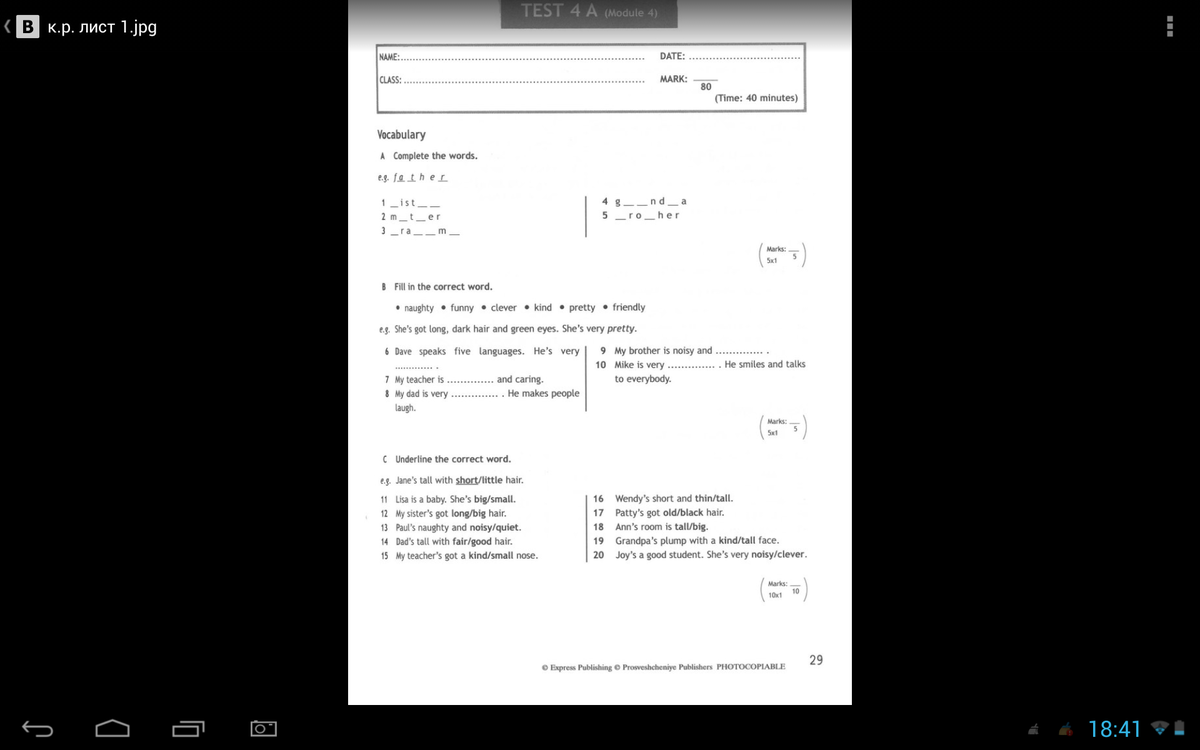 C.Small. Long. Noisy. Fair. Small. Thin. Black. Big. Kind. Clever