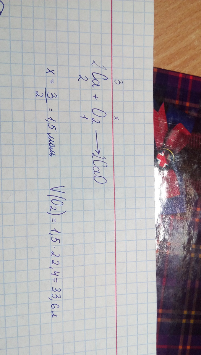 где, 3 - это количество кальция деленное на 2 т.е на коэффициент, равно х -это количество кислорода деленное на 1 ,тот же коэффициент.