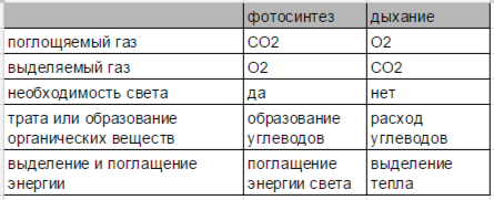 сделайте таблицу ФОТОСИНТЕЗ И ДЫХАНИЕ РАСТЕНИЙ ПОЖАЛУЙСТА ОТВЕТТЕ сравнивниваемые||| признкаки|||фотосинтез|||дыхание 1поглощаемый газ 2выделяемый газ 3необходимость света 4трата или образование органических внществ 5выделение и поглащение инергии