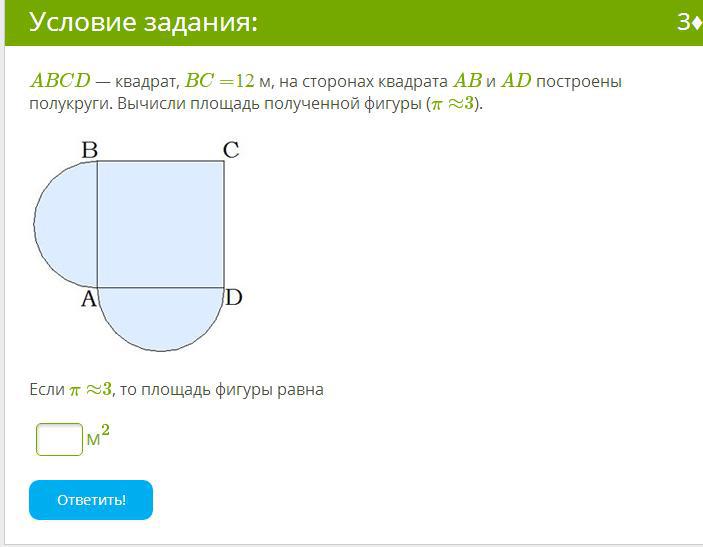S фигуры = S квадрата + S полукруга+ S полукруга
