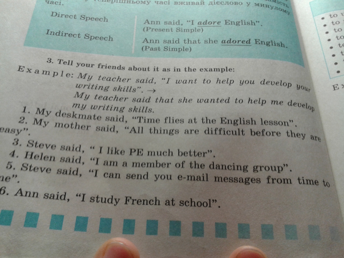 6. Ann said that she studies French at school.