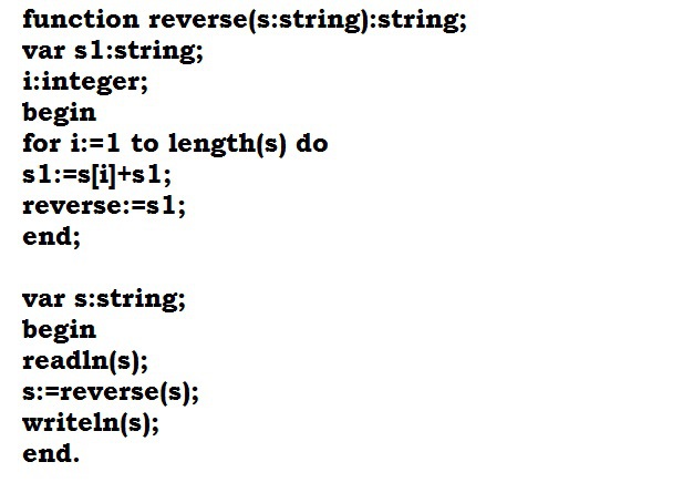 Напишите программу, которая "разворачивает" число наоборот, например, из числа 123 строит число 321. Используйте функцию для выполнения этой операции. Входные данные Входная строка содержит одно натуральное число. Гарантируется, что число не оканчивается на 0. Выходные данные Программа должна вывести число, в котором цифры стоят в обратном порядке в сравнении с исходным.