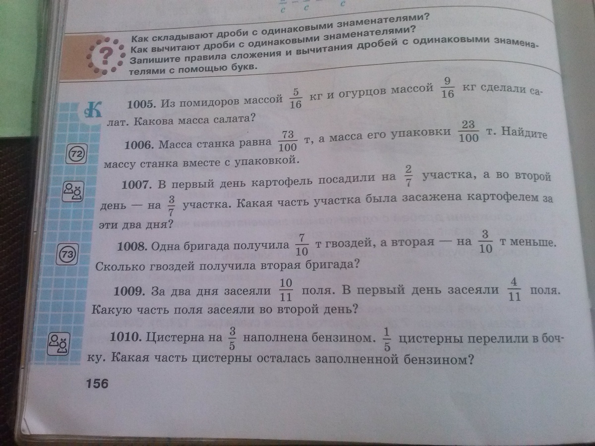 В 1005 надо обе дроби сложить.
