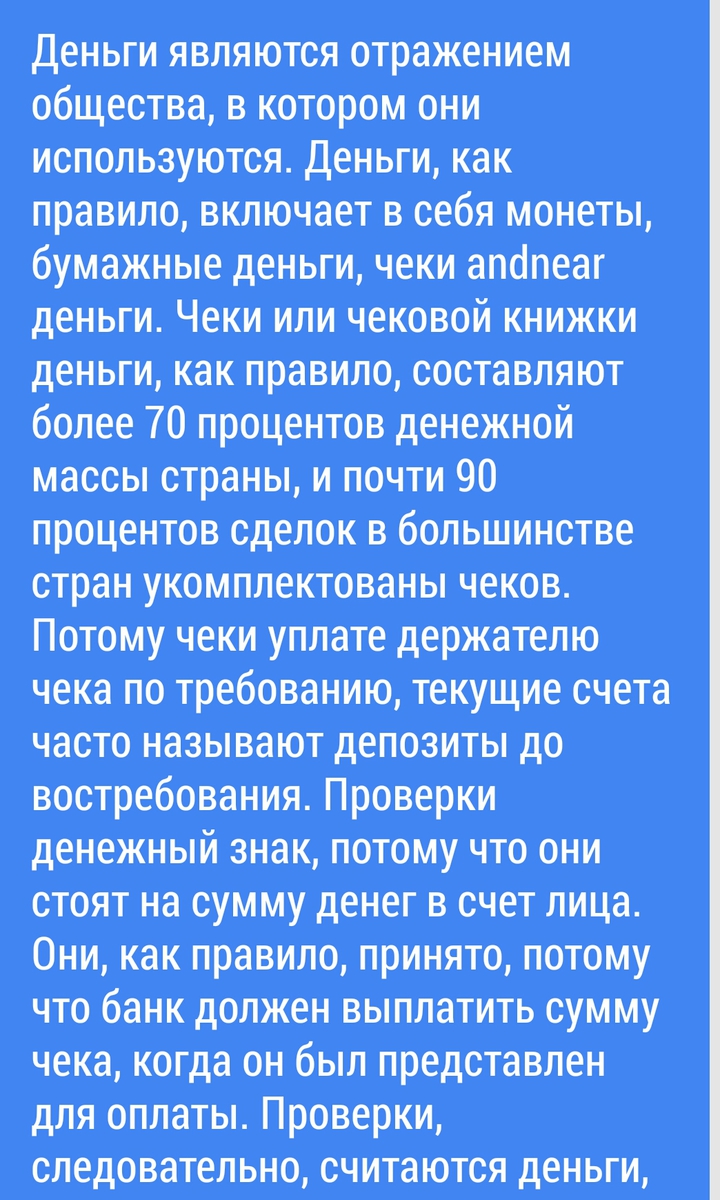 Чеки или чековые книжки , как правило, составляют более 70 процентов денежной массы страны и почти 90 процентов сделок в большинстве стран происходит посредством заполнения чеков. Поэтому чеки подлежащие уплате держателю чека по требованию, текущие счета часто называют депозиты до востребования.