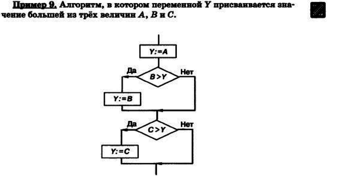 Дополните алгоритм из примера 9 так, чтобы с его помощью можно было найти наибольшую из четырех величин A, B, C, и D.
