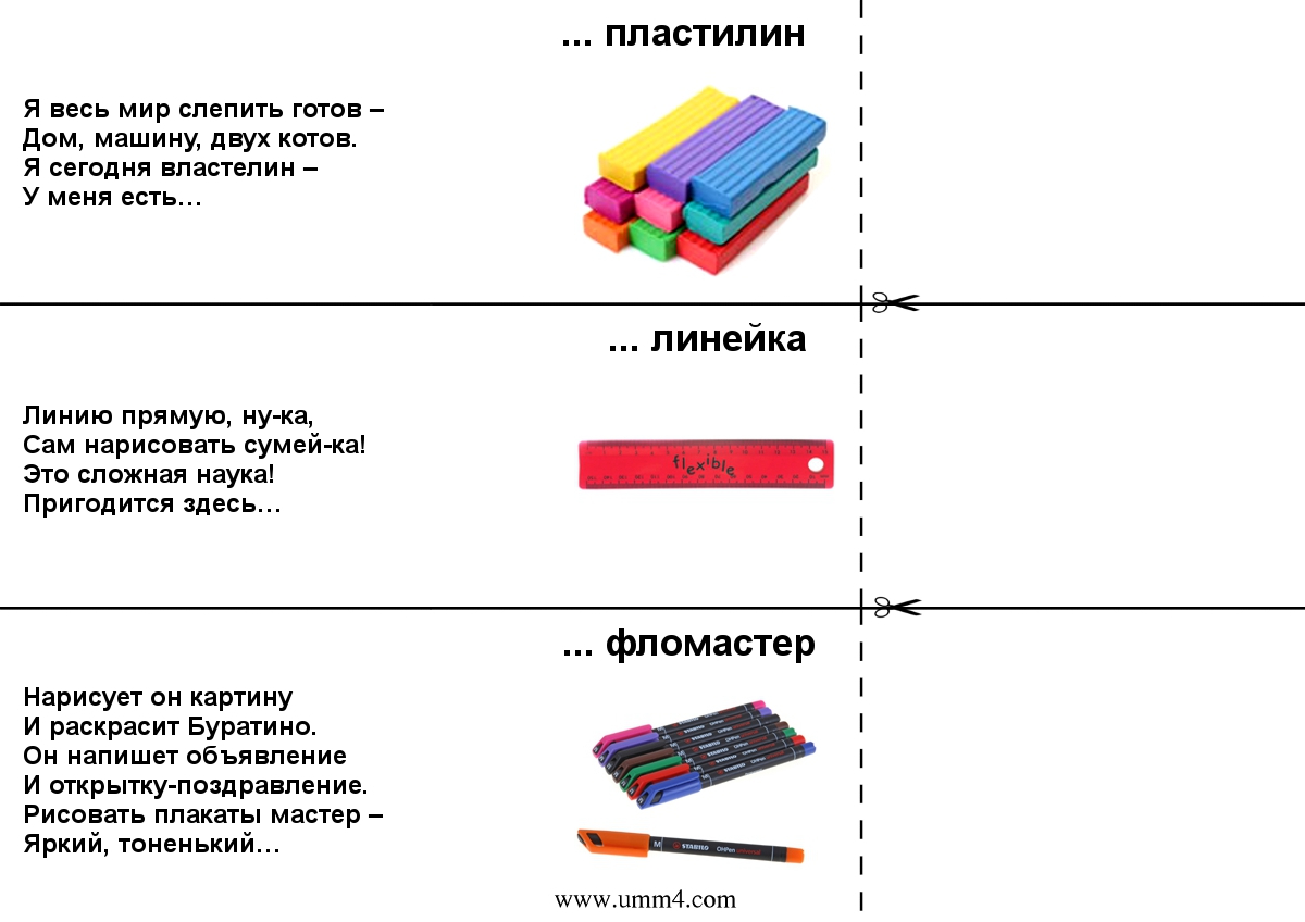 пластилин,линейка и фломастеры пойдут?