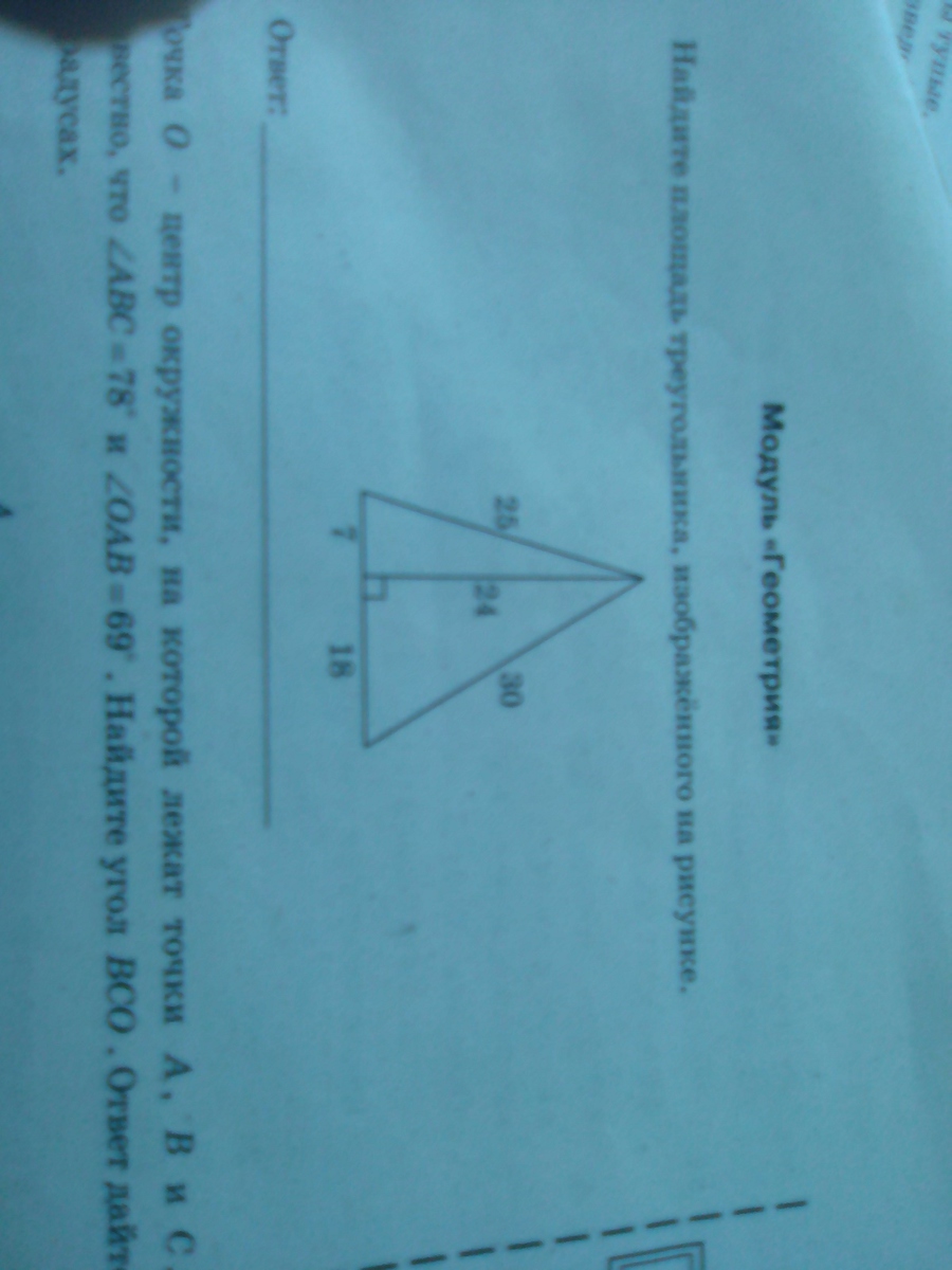 да ошиблась основание треугольника не 18 а 18+7=25, отсюда следует что S=1/2*24*25=300