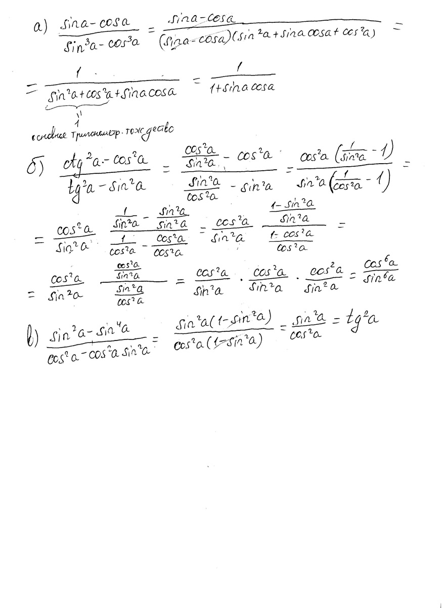 в) (sin^2a-sin^4a)/(cos^2a-cos^2a sin^2a)